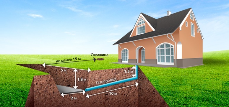 - Внешнее подключение – установка газопровода от магистрали до границ участка, включая возможность трансформирования магистральных линий.