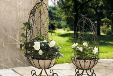 Металлические уличные цветочницы под кашпо: достоинства и монтаж